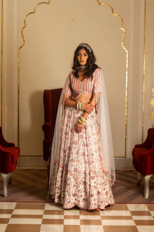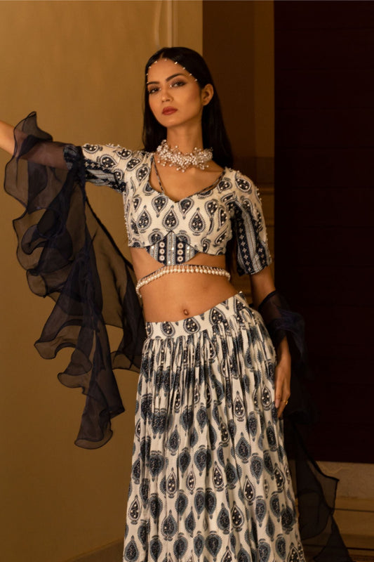 Ivory mirror gaze lehenga set