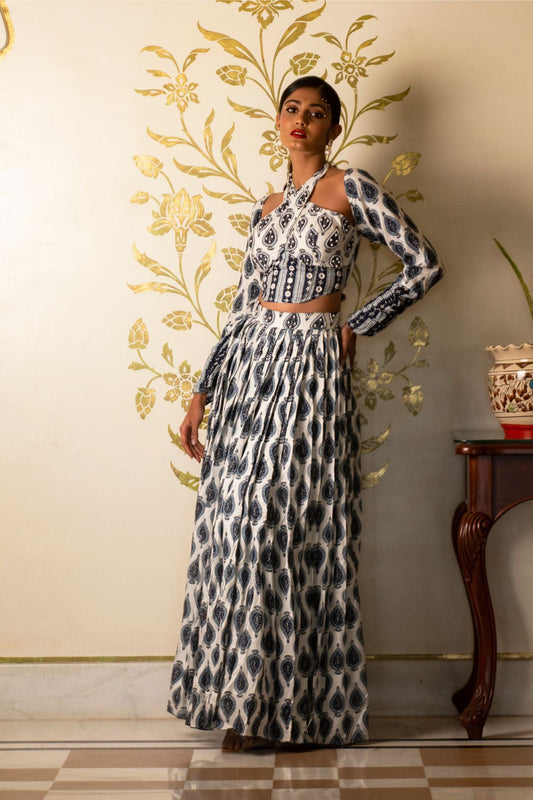 Ajrakh print skirt and coat set